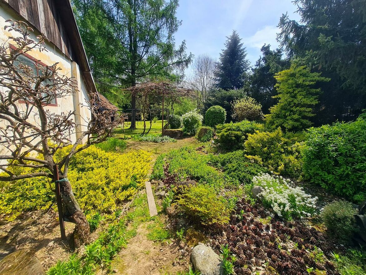 Działka zachwyca licznymi nasadzeniami drzewami liściastymi, owocowymi, krzewami oraz naturalną zielenią. Wygospodarowano tu również miejsce na ogród warzywny czy kwiatowy. Przestrzeń ta tworzy wyjątkowy klimat i stwarza idealne warunki do wypoczynku.