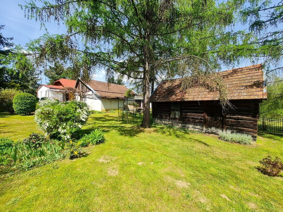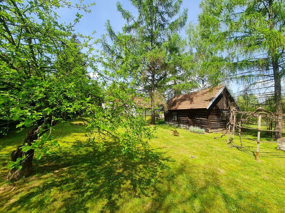 Prezentowana oferta obejmuje połowę domu typu bliźniak o charakterze murowano-drewnianym, budynek gospodarczy oraz zachowany w świetnym stanie drewniany dom z bali. Całość posadowiona jest na pięknej, płaskiej i ogrodzonej działce o powierzchni ok. 31 ar, która daje szerokie możliwości adaptacyjne zarówno pod cele mieszkalne, rekreacyjne, jak i inwestycyjne.